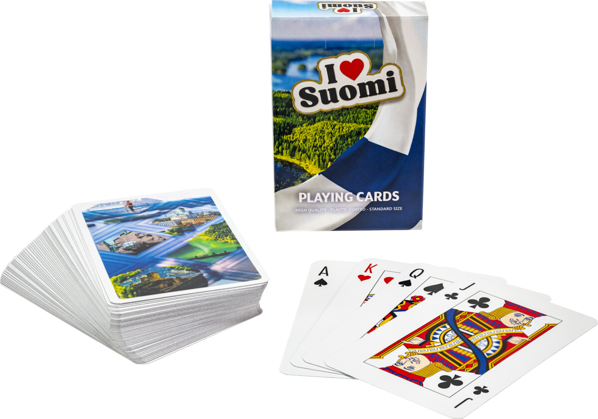 Laadukkaat Suomi-pelikortit ovat peli-illan sinivalkoinen piristys! Sopii niin kokeneille korttihaille kuin aloittelijoillekin.